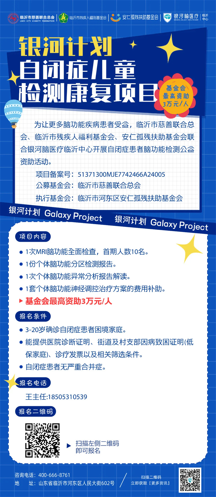 首期仅限10名,最高可领3万元!“银河计划—自闭症儿童检测康复项目”招募中~